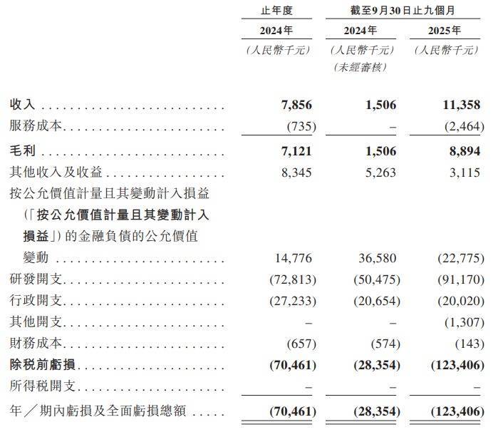 财务数据显示,泰励生物尚无任何产品获批商业化。2024年度,公司录得亏损人民币7046.1万元;而到了2025年前九个月,亏损额急剧膨胀至1.23亿元,同比增幅惊人。这意味着在报告期最后九个月内,公司月均亏损超过1300万元。