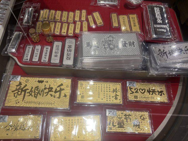 与紧邻步行街几家金店的冷清相比,位于金诚广场的一家金店则人气较旺。店内金条规格齐全,10克、20克等小克重产品备货充足。市民何女士在选购后,以每克28.8元的价格购买了两块20克银条。“银价降了,正好买点。金价现在太高,我觉得不划算。”她笑着说。